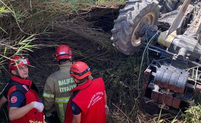 Balıkesir'in Edremit ilçesinde devrilen traktörün altında kalan sürücü yaşamını yitirdi. Kaza yerine itfaiye ekipleri sevk edildi.