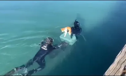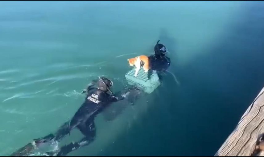 İhbar üzerine bölgeye sevk edilen Sahil Güvenlik Komutanlığı’na bağlı balık adamlar, iskelenin altındaki karanlık ve dar alana girerek titiz bir çalışma yürüttü. Ekipler, kedinin yerini kısa sürede tespit etti ve yanlarında getirdikleri yüzer bir kasa üzerine alarak güvenli bölgeye taşıdı. Denizden kıyıya çıkarılan kediye yapılan ön kontrolde sağlık durumunun iyi olduğu belirlendi ve hayvan doğal yaşam alanına bırakıldı.