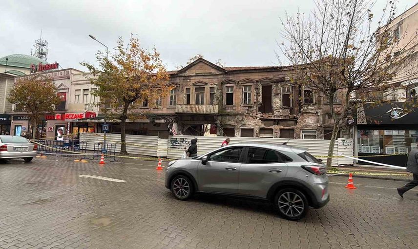 Edremit’te Tarihi Binanın Bir Bölümü Sağanakta Yıkıldı
