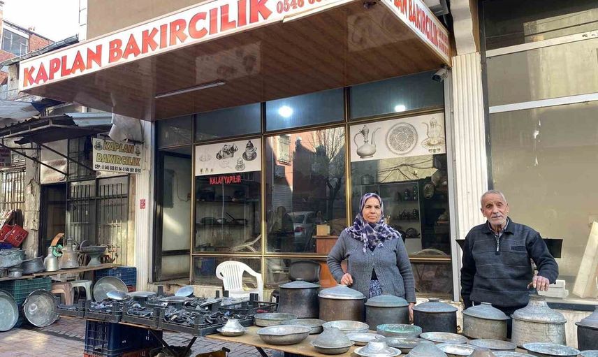 Elmas Kaplan, yaklaşık 50 yıldır mesleği icra ettiklerini, kentte bu zanaatın öncülerinden olduklarını ve uzun yıllardır aynı dükkanda çalıştıklarını belirtiyor. Çift, kalaycılığın günümüzde giderek azalmakta olan mesleklerden biri olduğunu vurguluyor.