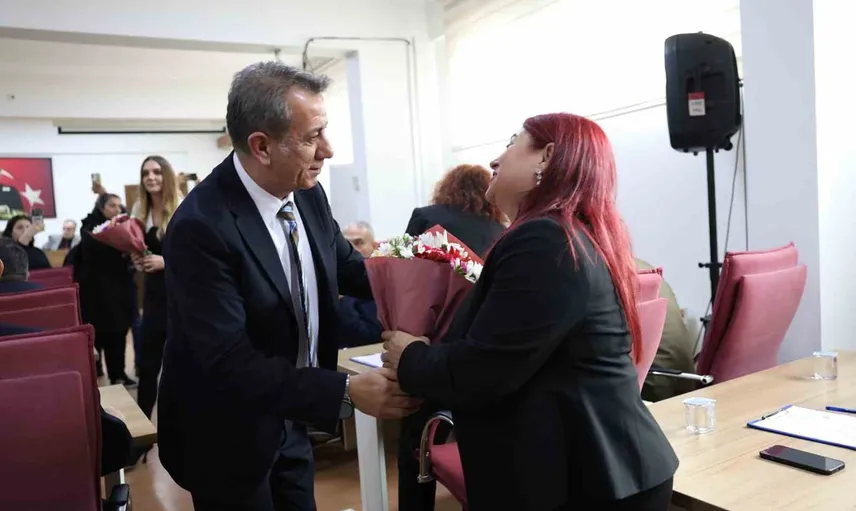 Efeler Belediye Başkanı Anıl Yetişkin, 3 Nisan'da kadın meclis üyelerine çiçek takdim etti