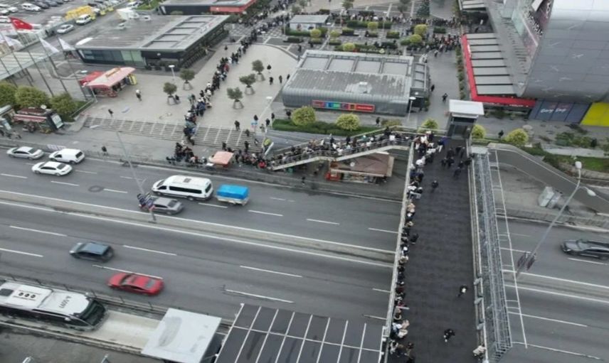 Efsane cuma indirimlerinden yararlanmak isteyenlerin oluşturduğu kuyruk, Esenyurt’ta bir alışveriş merkezinin önünde metrobüs üst geçidine kadar uzadı. Sabah saat 06.00’dan itibaren sıraya giren vatandaşlar, alışveriş merkezinin açılış saatini heyecanla bekledi.