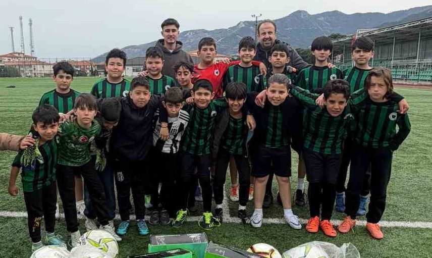 Bornova 1877'nin genç futbolcusu, Buldan Belediyespor altyapısına malzeme desteği sağladı