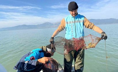 Eğirdir Gölü'nde 300 kaçak kerevit pinteri ele geçirildi