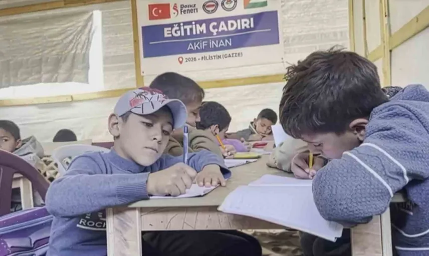 EĞİTİMCİLER BİRLİĞİ SENDİKASI (EĞİTİM-BİR-SEN), DENİZ FENERİ DERNEĞİ İLE BİRLİKTE GAZZE'DE MEHMET AKİF İNAN'IN ADINI TAŞIYAN EĞİTİM ÇADIRI KURARAK GAZZELİ ÇOCUKLARIN EĞİTİMİNE DESTEK VERMEYE BAŞLADI.