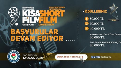 Eğitim Temalı 9. Uluslararası Kısa Film Yarışması'na başvurular devam ediyor Eğitimciler Birliği Sendikası (Eğitim-Bir-Sen) tarafından düzenlenen 9. Uluslararası Kısa Film Yarışması için başvuruların son tarihi 12 Ocak 2026 olarak açıklandı. Yarışma, eğitimin birey ve toplum üzerindeki dönüştürücü etkisini sinema aracılığıyla…