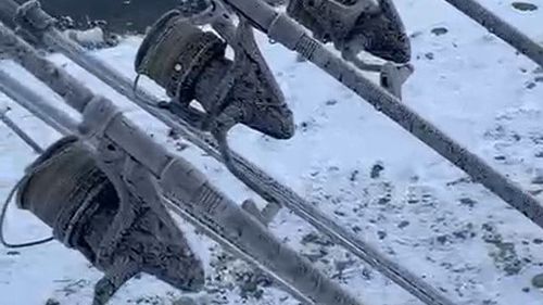 Eskişehirli kampçı Çağlar Memiş ve arkadaşları, Bilecik Söğüt'teki Zemzemiye Göleti'nde eksi 22°C'yi bulan soğukta oltalarının buzlanmasını cep telefonuyla kaydetti.