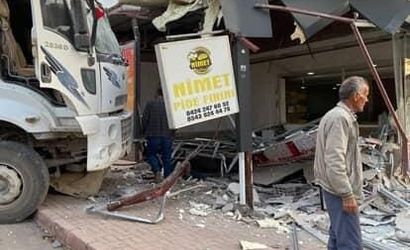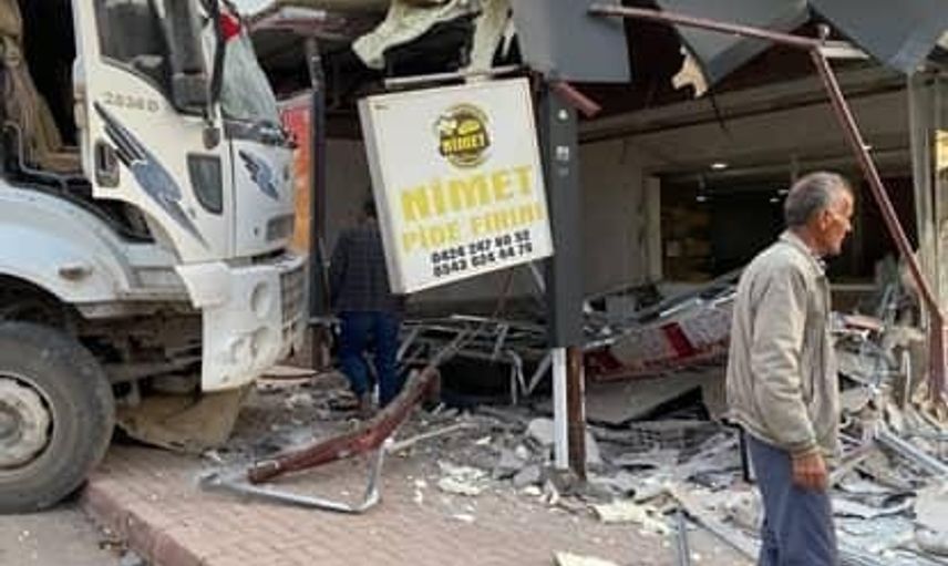 ELAZIĞ’DA FRENİ PATLAYAN KAMYON, EKMEK FIRININA DALDI. FIRINDA KİMSENİN OLMAMASI BÜYÜK BİR FACİAYI ÖNLEDİ