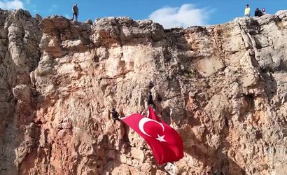 Elazığ'ın Ağın ilçesinde, Cumhuriyet'in kuruluşunun 102. yılı anısına düzenlenen tırmanışta dağcılar, büyük bir Türk bayrağıyla Balkayası kayalıklarına çıkardı. Etkinlik, Ağın Kaymakamlığı ile Elazığ Doğa Sporları Spor Kulübü işbirliğiyle gerçekleştirildi.