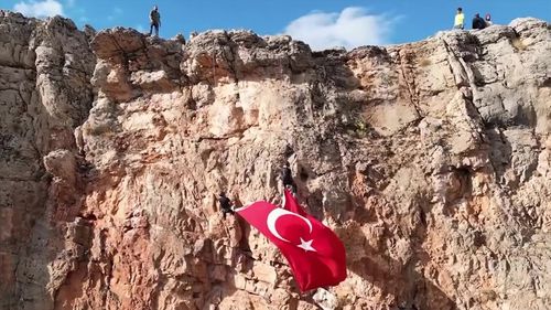 Elazığ Ağın'da dağcılar Cumhuriyet'in 102. yılı için balkayası kayalıklarına bayrakla tırmandıTırmanış, 29 Ekim Cumhuriyet Bayramı etkinlikleri kapsamında düzenlendiElazığ'ın Ağın ilçesinde, Cumhuriyet'in kuruluşunun 102. yılı anısına düzenlenen tırmanışta dağcılar, büyük bir Türk bayrağıyla Balkayası kayalıklarına çıkardı. Etkinlik, Ağın Kaymakamlığı ile Elazığ…