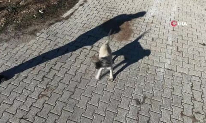 O anlar hem dron kamerasına hem de cep telefonu kamerasına yansıdı; kayıtlarda köpeğin merakı ve hareketleri açık şekilde gözlemleniyor.