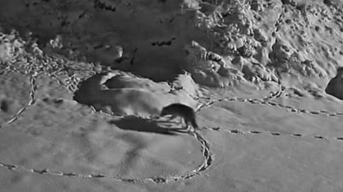 Elazığ'da kar yağışı nedeniyle yiyecek arayan bir kurt, Kurtdere mezrasına inip güvenlik kameralarına takıldı.