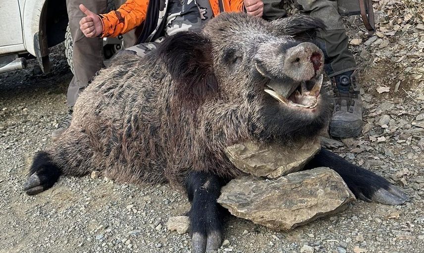AV TURİZMİ KAPSAMINDA YURTDIŞINDAN GELEN YABANCI AVCILAR, ELAZIĞ’DA DAĞLIK ALANLARDA 200 KİLO AĞIRLIĞINDA YABAN DOMUZU AVLADI