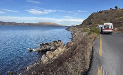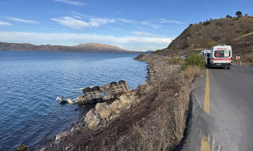 Elazığ'da beton mikseri Hazar Gölü'ne devrildi: sürücü yaralandı