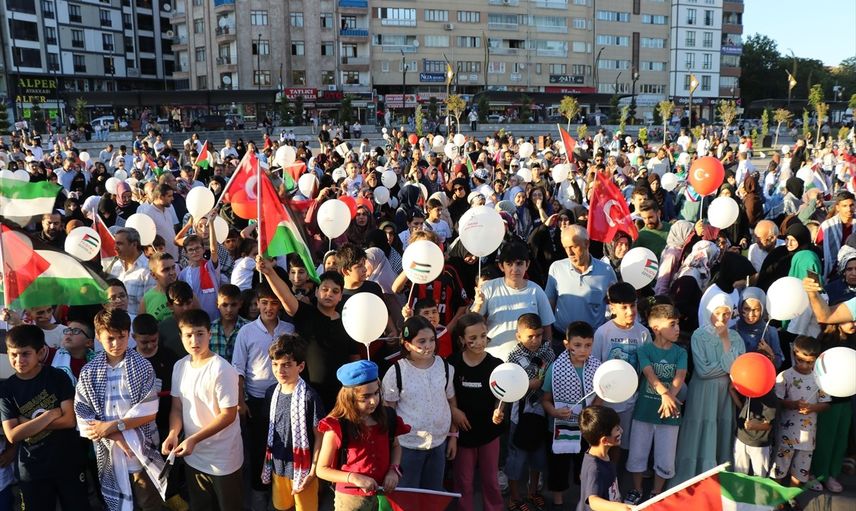El-Aksa Platformu'nun öncülüğünde, 15 Temmuz Demokrasi Meydanı'nda buluşan çocuklar, ellerinde Türk ve Filistin bayraklarıyla Cumhuriyet Meydanı'na yürüdü.