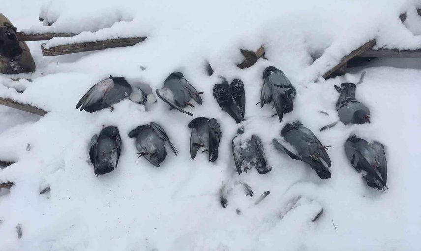 HAVA SICAKLIĞININ EKSİ 13 DERECELERİ GÖRDÜĞÜ ELAZIĞ’DA, ONLARCA GÜVERCİN DONARAK TELEF OLDU