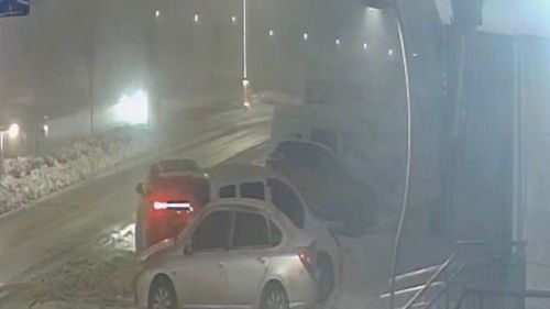 Elazığ Abdullapaşa Mahallesi Saray Bosna Caddesi'nde geri manevra yapan bir araç, park halindeki iki araca çarparak maddi hasara neden oldu; olay anı güvenlik kamerasına yansıdı.