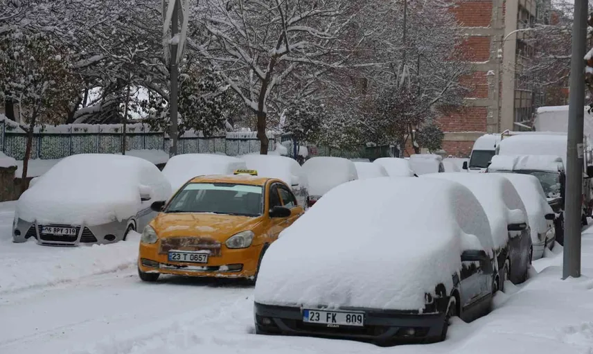 Elazığ'da kar 20 santimetreye ulaştı; park halindeki araçlar kar altında kaldı