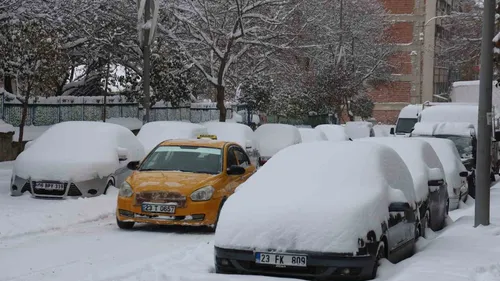 Elazığ'da kar 20 santimetreye ulaştı; park halindeki araçlar kar altında kaldı