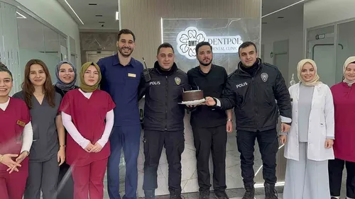 Elazığ'da kavga ihbarına giden polisler diş kliniğinde pasta ve çiçekle karşılandı
