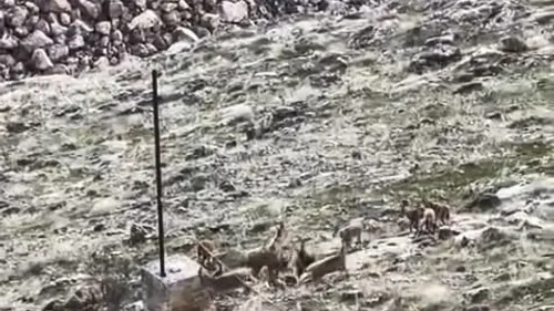 Elazığ Keban Barajı sahasında nesli tükenme tehdidi altındaki dağ keçilerinin sürü halinde görüldüğü, bir vatandaşın cep telefonuyla kaydettiği bildirildi.