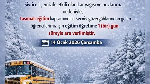 Elazığ'da Keban ve Sivrice ilçelerinde etkili kar yağışı ve buzlanma nedeniyle taşımalı eğitime çarşamba günü 1 gün ara verildi.