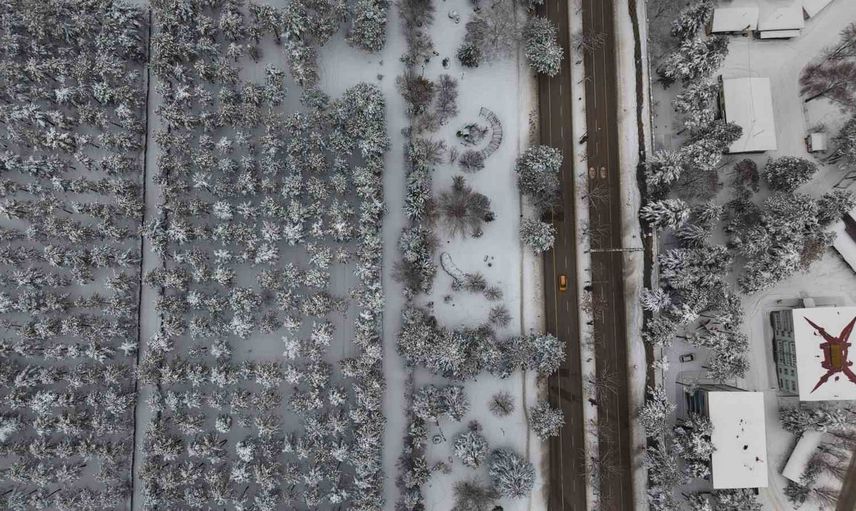 Park ve kampüs alanının havadan görüntülenmesi, modern kent dokusuyla kar örtüsünün kontrastını net biçimde ortaya koydu. Beton yığınlarının içinde oluşan bu beyaz örtü, kente alışılmadık bir sakinlik ve görsel zenginlik getirdi.