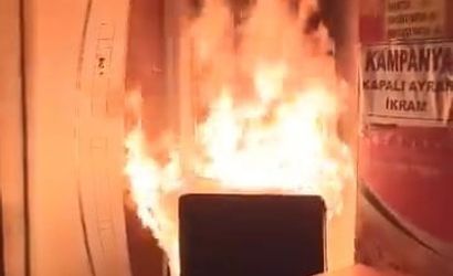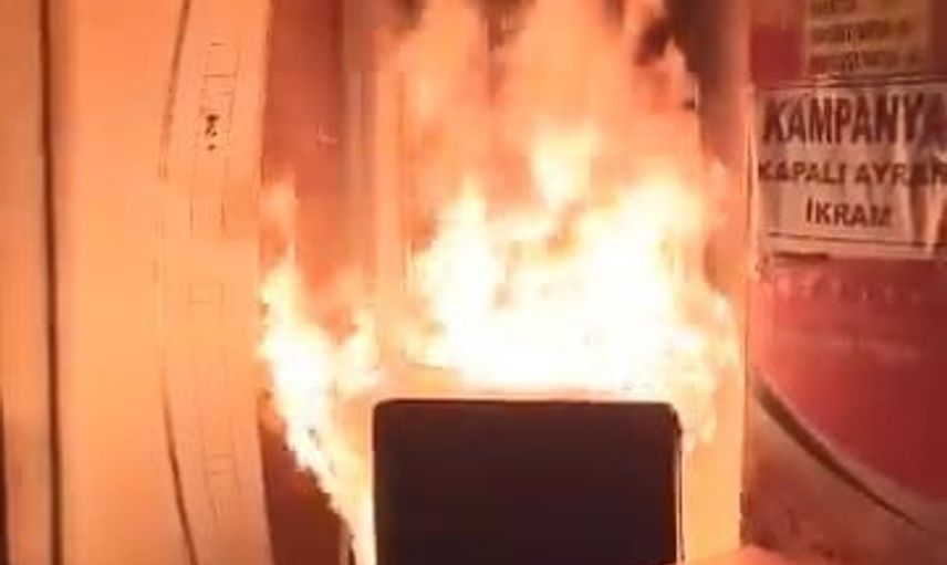Komşu esnafın yangın söndürme tüpüyle yaptığı müdahale sonucunda alevler büyümeden söndürüldü. O anlar bir vatandaşın cep telefonu kamerasına yansıdı.
