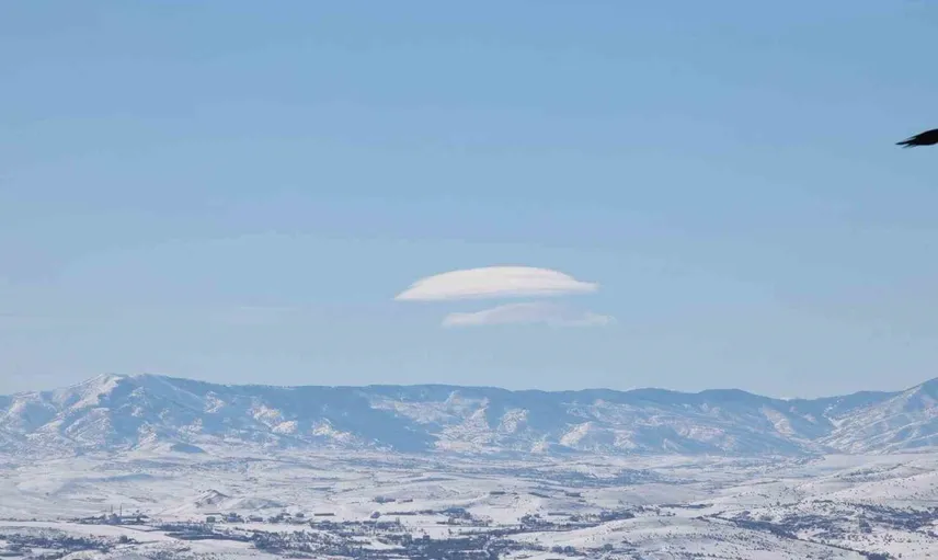 Elazığ semalarında görülen mercek bulutları izleyenlere dikkat çekici bir manzara sundu. Lenticular (merceksi) bulutlar olarak bilinen bu oluşumlar, şehirdeki doğa fotoğrafçısı Naci Demirpolat tarafından görüntülendi.
