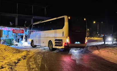 Elazığ'da otobüs karlı yolda kayarak iş yerine çarptı; devrilmekten kurtuldu
