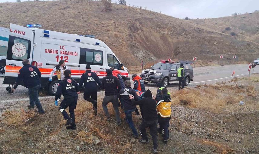 ELAZIĞ’DA SÜRÜCÜSÜNÜN DİREKSİYON HAKİMİYETİNİ KAYBETTİĞİ PİKAP, ŞARAMPOLE UÇTU. KAZADA 2 KİŞİ YARALANDI