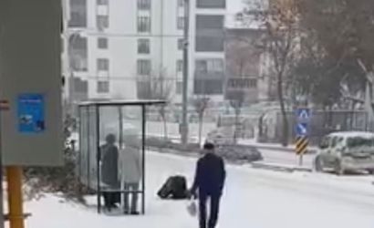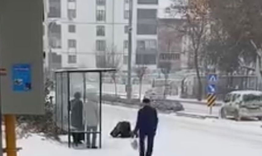 SABAH SAATLERİNDE ETKİLİ OLAN KAR YAĞIŞI SIRASINDA BİR VATANDAŞIN CADDE ORTASINDA SECDE ETTİĞİ ANLAR SOSYAL MEDYADA PAYLAŞILDI