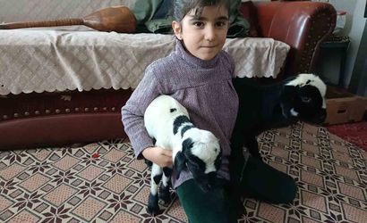 Kuzularla en yakından ilgilenenlerden biri olan Havin Sevim, evde beslenen kuzularla ilgileniyor ve onlara sevgi gösteriyor.