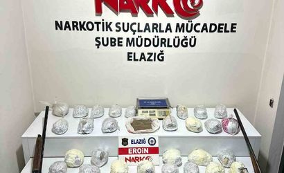 Elazığ'da uyuşturucu operasyonu: 30,8 kg eroin, silah ve para ele geçirildi; 4 gözaltı