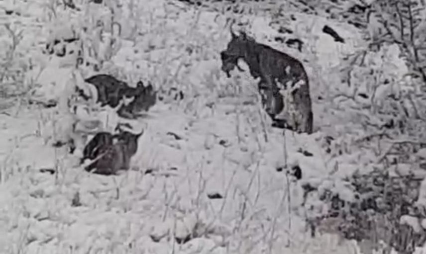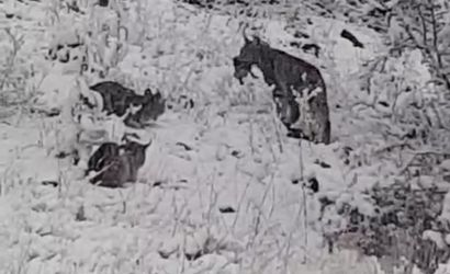 Elazığ'ın Karakoçan ilçesi Balcalı köyü kırsalında, kar üzerinde avladıkları kekliği yerken görüntülenen bir anne vaşak ve 2 yavrusu kameralara yansıdı. O anlar, bölgede bulunan Kenan Çavundur tarafından cep telefonu ile kaydedildi.