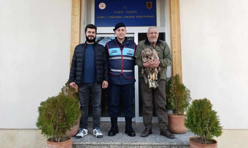 Elazığ'da, Harput Jandarma Karakol Komutanlığı ekipleri, devriye görevi sırasında Gümüşbağlar köyü yolunda yaralı bir kaya kartalı buldu. Ekipler, kartalı derhal Elazığ Doğa Koruma ve Milli Parklar Şube Müdürlüğü görevlilerine teslim etti.