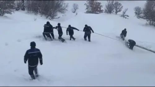 Elazığ'ın Palu ilçesinde kar nedeniyle devrilen elektrik direklerinin onarımı için Fırat EDAŞ ekipleri, iş makinelerinin ulaşamadığı alanlarda direkleri taşıyarak arızaya müdahale ediyor.