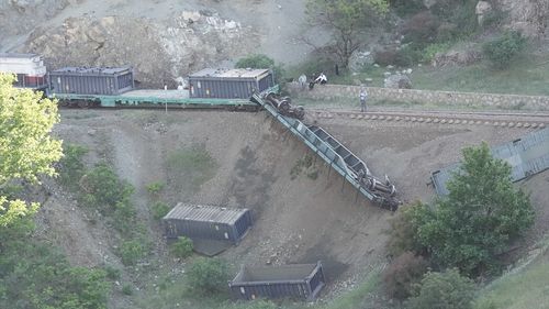 Elazığ Maden ilçesinde yük treninin 5 vagonu raydan çıkarak kazaya neden oldu, 2 vagon şarampole devrildi.