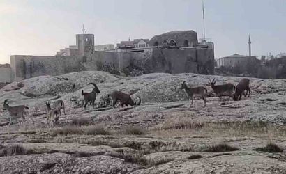 Sabah saatlerinde Elazığ'ın Harput Mahallesi yakınlarında, nesli koruma altında bulunan dağ keçilerinin sürü halinde görüldüğü anlar kaydedildi. Keçiler, Harput Kalesi'nin hemen altında otlarken görüntülendi.