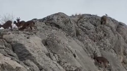 Elazığ Harput’ta Nesli Koruma Altındaki Yaban Keçileri Sürü Halinde Görüntülendi