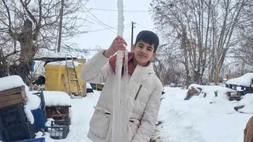 Elazığ'ın Palu ilçesinde kar sonrası soğuyan hava ile oluşan buz sarkıtları, 2 çocuğun fotoğraf çektirmesiyle ilgi çekti.