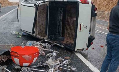 Elazığ-Keban Yolu'nda Kamyonet Devrildi