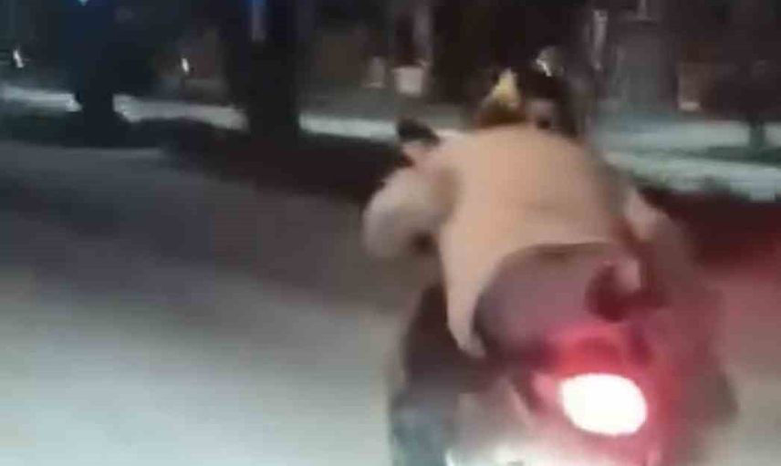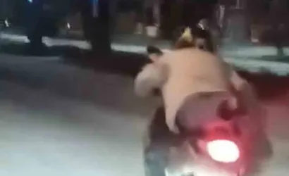ELAZIĞ’DA BİR SÜRÜCÜ KENDİ CANINI HİÇE SAYIP, MOTOSİKLETİN ÜZERİNE UZANARAK SEYRETTİ