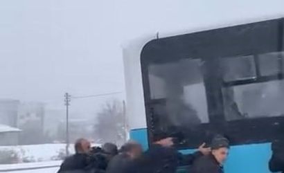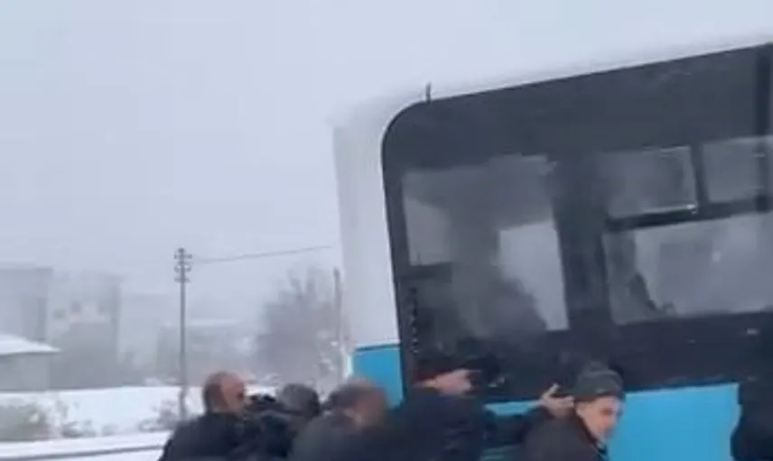 Yolda kalan otobüsü gören bölge sakinleri hızla harekete geçti. Vatandaşlar, otobüsü arkadan iterek mahsur kaldığı yerden çıkardı ve araç güvenli bir şekilde hareket edebilecek duruma getirildi.