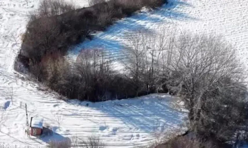 Elazığ Selli Köyü'nde kar üzerinde domuz sürüsü drone ile görüntülendi