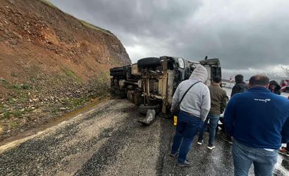 Elazığ-Diyarbakır karayolu Sivrice kesiminde meydana gelen kazada, yağış nedeniyle kayganlaşan zeminde sürücüsünün direksiyon hakimiyetini kaybettiği beton pompası yan yattı. Olayda 1 kişi yaralandı.