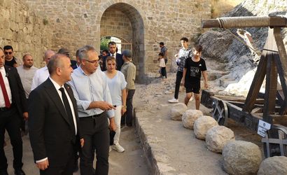 Elazığ Valisi Numan Hatipoğlu, tarihi Harput Mahallesi'nde bulunan Harput Kalesi'nde yürütülen kazı çalışmalarıyla ilgili incelemelerde bulundu.