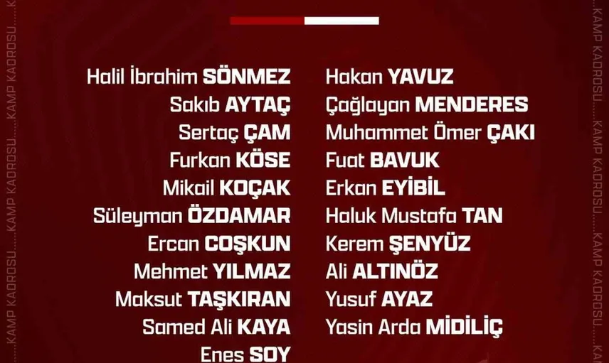 Teknik Direktör Adem Çağlayan tarafından oluşturulan kadroda, 3 haftalık cezasını tamamlayan Muhammet Ömer Çakı yeniden yer aldı. Teknik heyetin kararıyla İstanbul'a götürülecek 21 kişilik listede şu isimler bulunuyor: