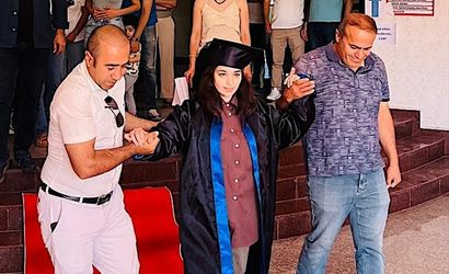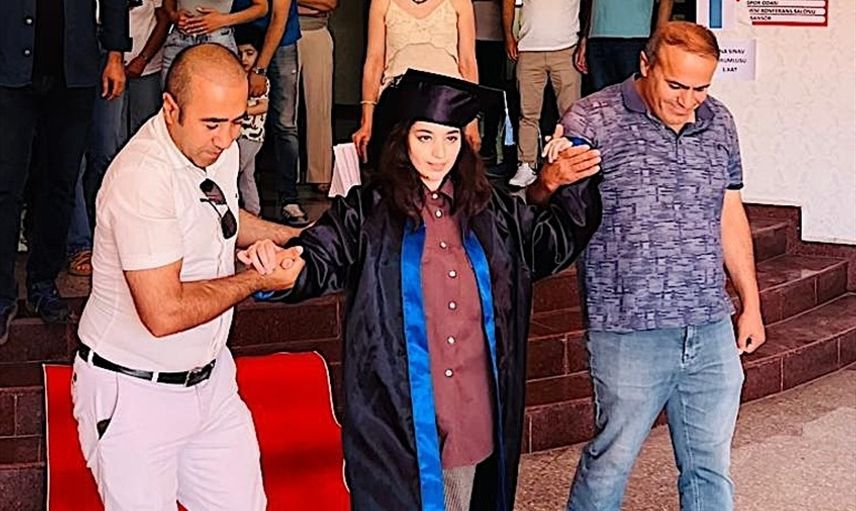 Van'da, öğretmen ve öğrencilerin katılımıyla başlatılan bir kampanya ile tedavisi yapılan serebral palsili 17 yaşındaki Elif Eylül Gültekin, İpekyolu Van Anadolu Lisesi'nde düzenlenen mezuniyet töreninde kep atarak mezuniyet sevinci yaşadı.