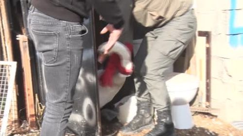 Elmadağ'da bahçeye düşen kuğu bir gün misafir edildi